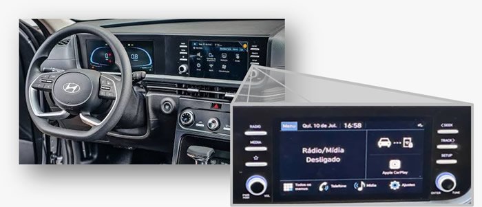A central multimídia desenvolvida pela Hyundai Mobis possui o mesmo design e usabilidade do aparelho atualmente já disponível na versão Comfort do modelo.
