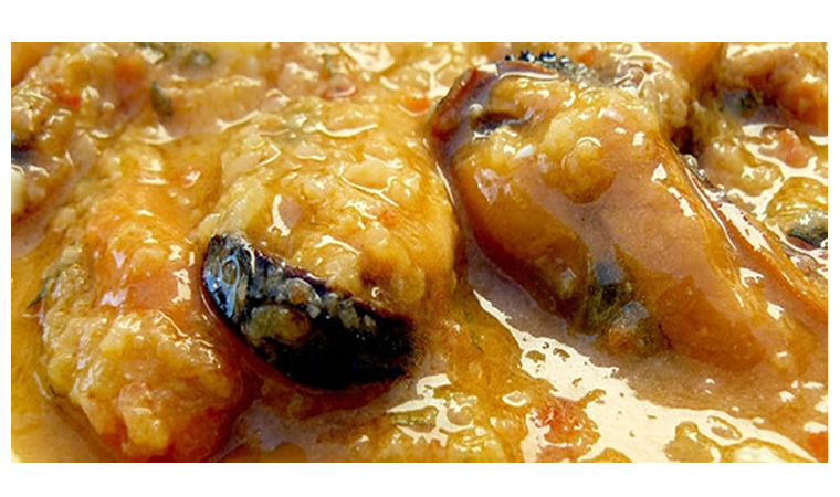 Lave cuidadosamente os mexilhões e ponha-os a abrir numa mistura de caldo de galinha e vinho branco. Abra-os depois e, dentro de cada um, coloque uma amêndoa pelada.