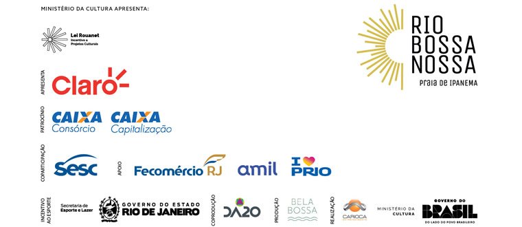 O Festival Rio Bossa Nossa é apresentado pela Claro e conta com patrocínio de Sesc, Sofitel, Amil,Caixa, Prio, Secretaria de Esportes do Governo do Estado do Rio de Janeiro, por meio da Lei Rouanet e do Ministério da Cultura, além do apoio da Prefeitura da Cidade do Rio de Janeiro e da Riotur. Para a Claro, apoiar a iniciativa reforça o compromisso da empresa com ações culturais abertas e acessíveis.